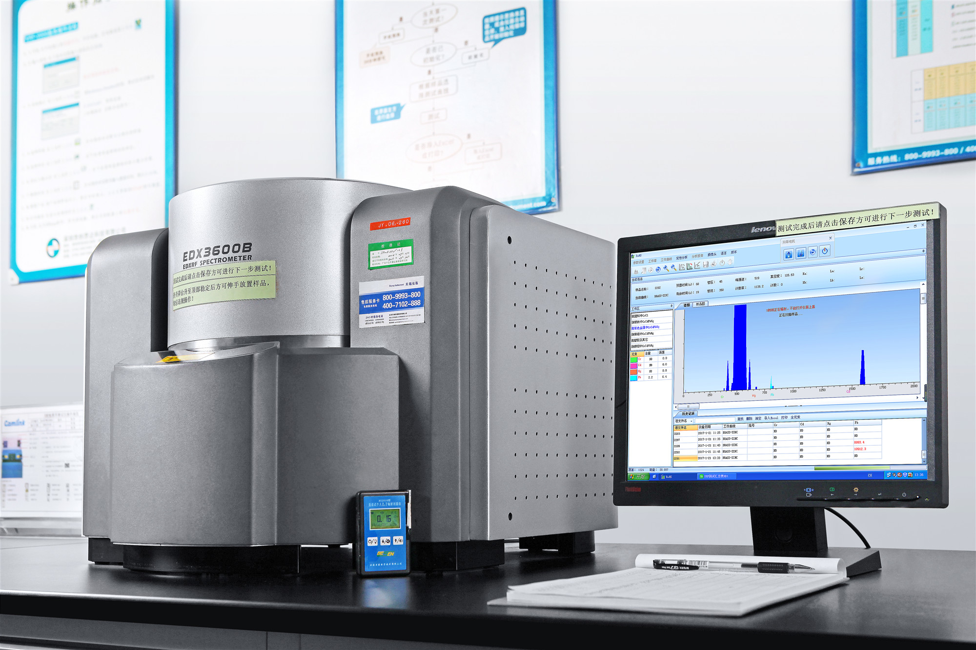 儀器型號:EDX3600B 儀器品牌:天瑞(江蘇) 測試項(xiàng)目:快速定性Br、Cr、Cd、Hg、Cl、As、Sb等 測試標(biāo)準(zhǔn):IEC62321